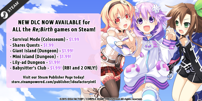 Idea Factory International On Twitter New Dlc For The Hyperdimension Neptunia Re Birth Series On Steam Games Are Now Available Check Out New Dungeons Quests And An Online Ranking Survival Mode The Babysitter S Club