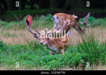 Duelmen Nrw Germany 21st Aug 2021 A Fallow Deer Buck Dama Dama With Bloodied Part Shed Velvet Every Year Male Deer Shed The Velvet Skin Once Their Antlers Are Fully Grown Blood And